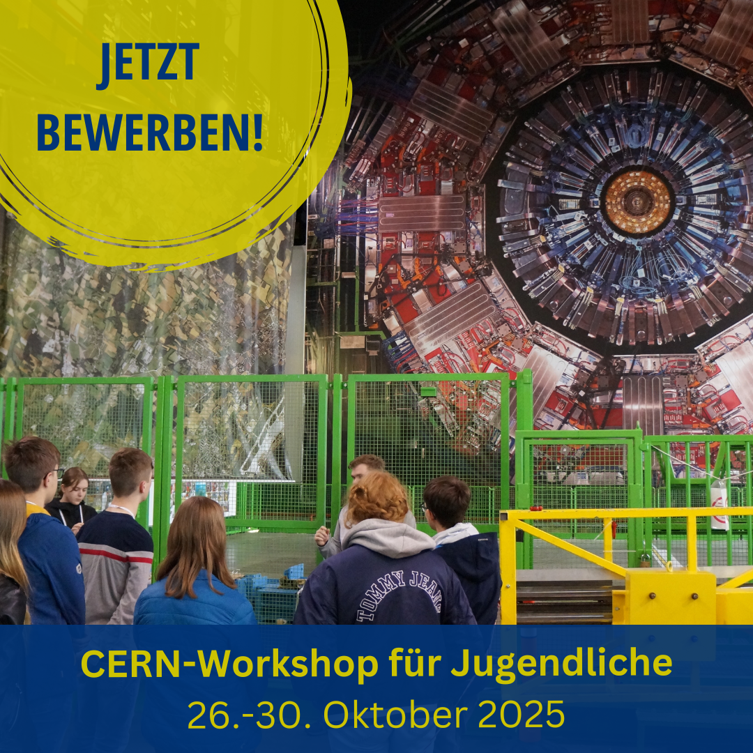 Endlich ist es wieder so weit: Vom 26. bis 30. Oktober 2025 findet unser nächster CERN-Workshop statt. Innerhalb von vier Tage am größten Teilchenbeschleuniger der Welt wird den Teilnehmer:innen ein spannendes und abwechslungsreiches Programm geboten: Neben Besichtigungen von Experimenten sowie Vorlesungen zu Elementarteilchenphysik stehen Aktivitäten im Schülerlabor und eine Erkundungstour durch Genf auf dem Programm. Zudem werden Wissenschaftler:innen aus dem Forschungsalltag und über den neuesten Stand der Teilchenphysik berichten. Dabei gibt es genügend Möglichkeiten, Fragen aller Art zu stellen und mehr über Physik sowie den Alltag am CERN zu erfahren.